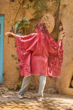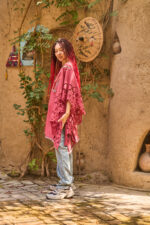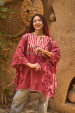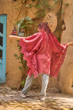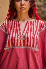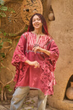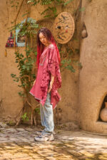 Unique handmade tunic by Human Wear, crafted from vintage cotton lace and Khan-Atlas silk. Features a loose fit, asymmetrical hem, and hand-woven ‘jiyak’ braid. Size M–XL. Contact seller to confirm availability