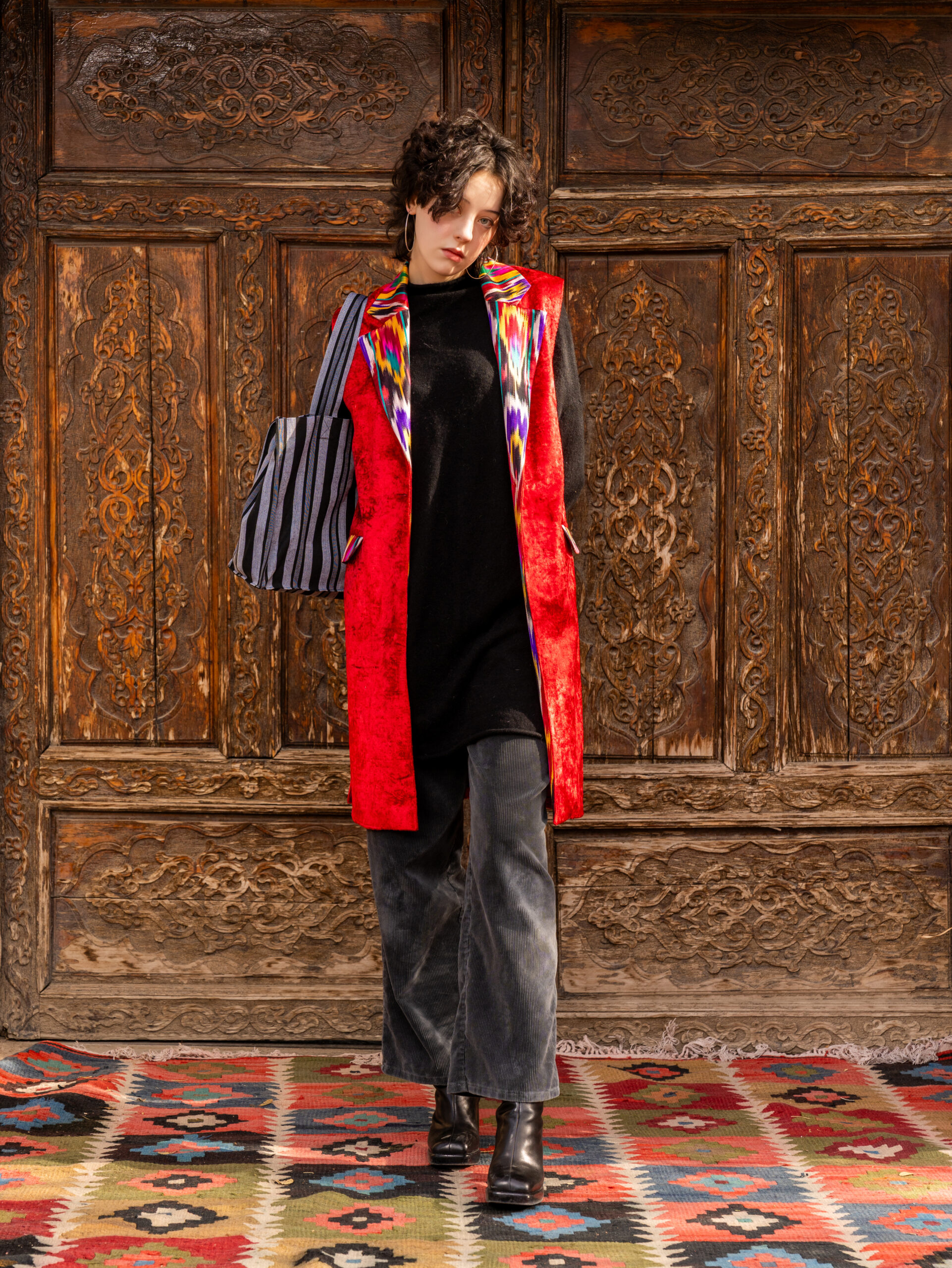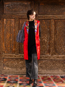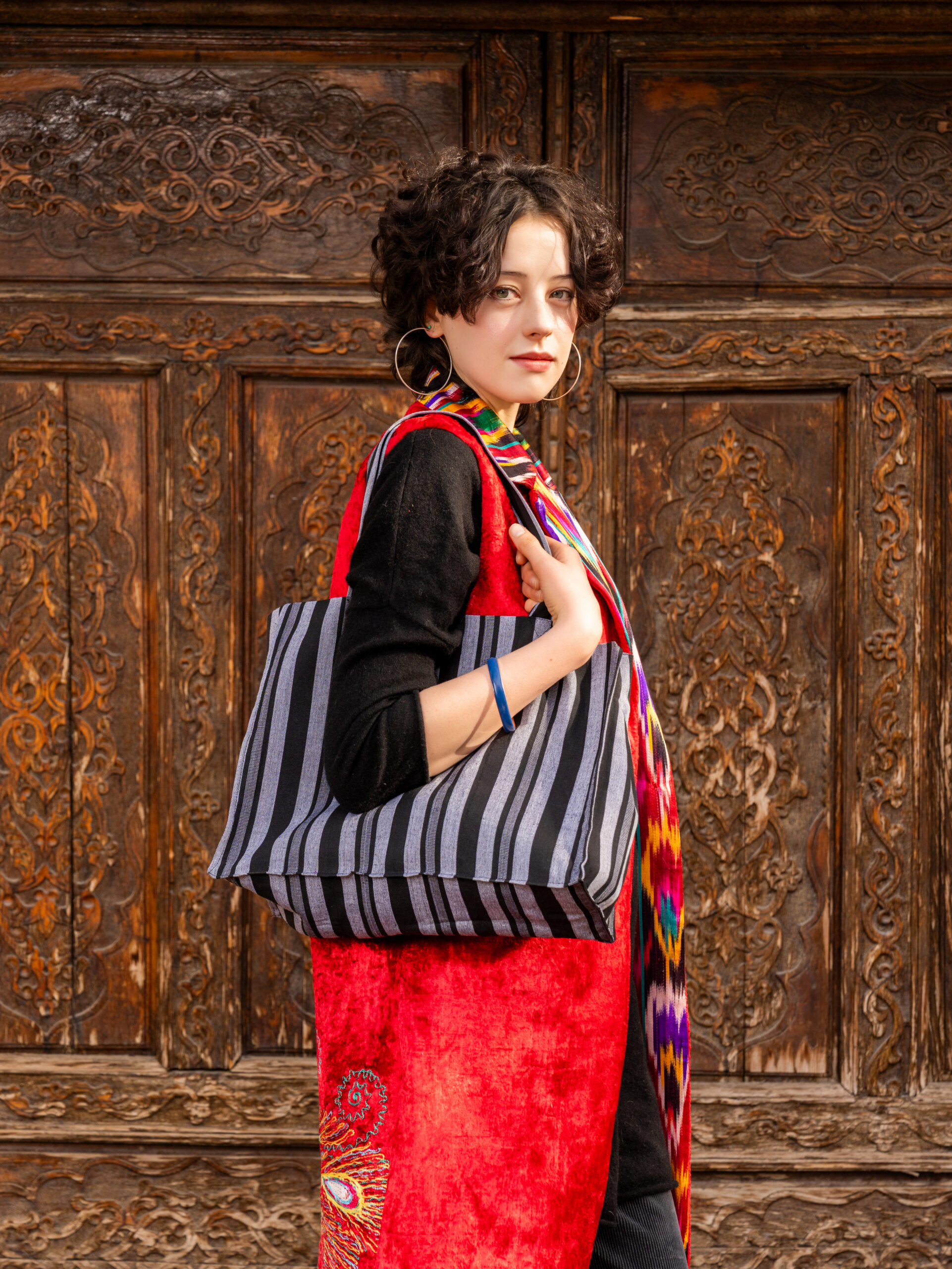 Shopper bag made of natural cotton bekasam.  The shopper is hand-sewn by the designer of the “Human Wear brand”.
