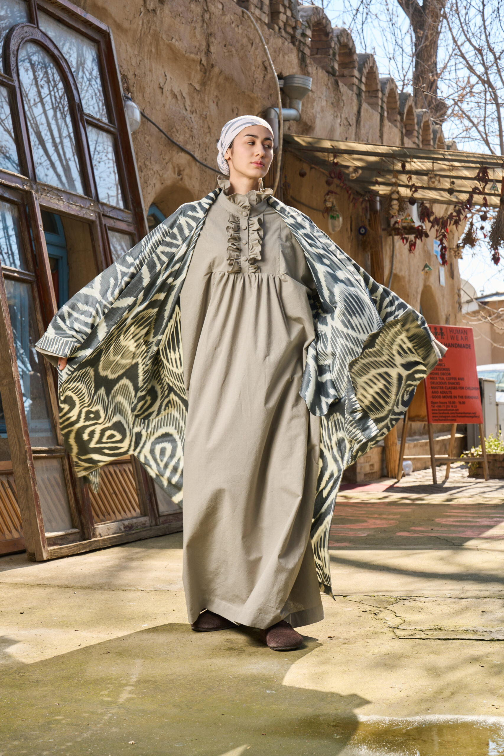 This item is unique, one of a kind, sewn by the designer of the uzbek famous designer.Natural organic cotton were used for the dress: 100% natural expensive cotton “Mitkal”.