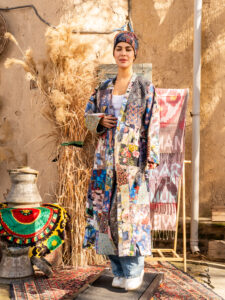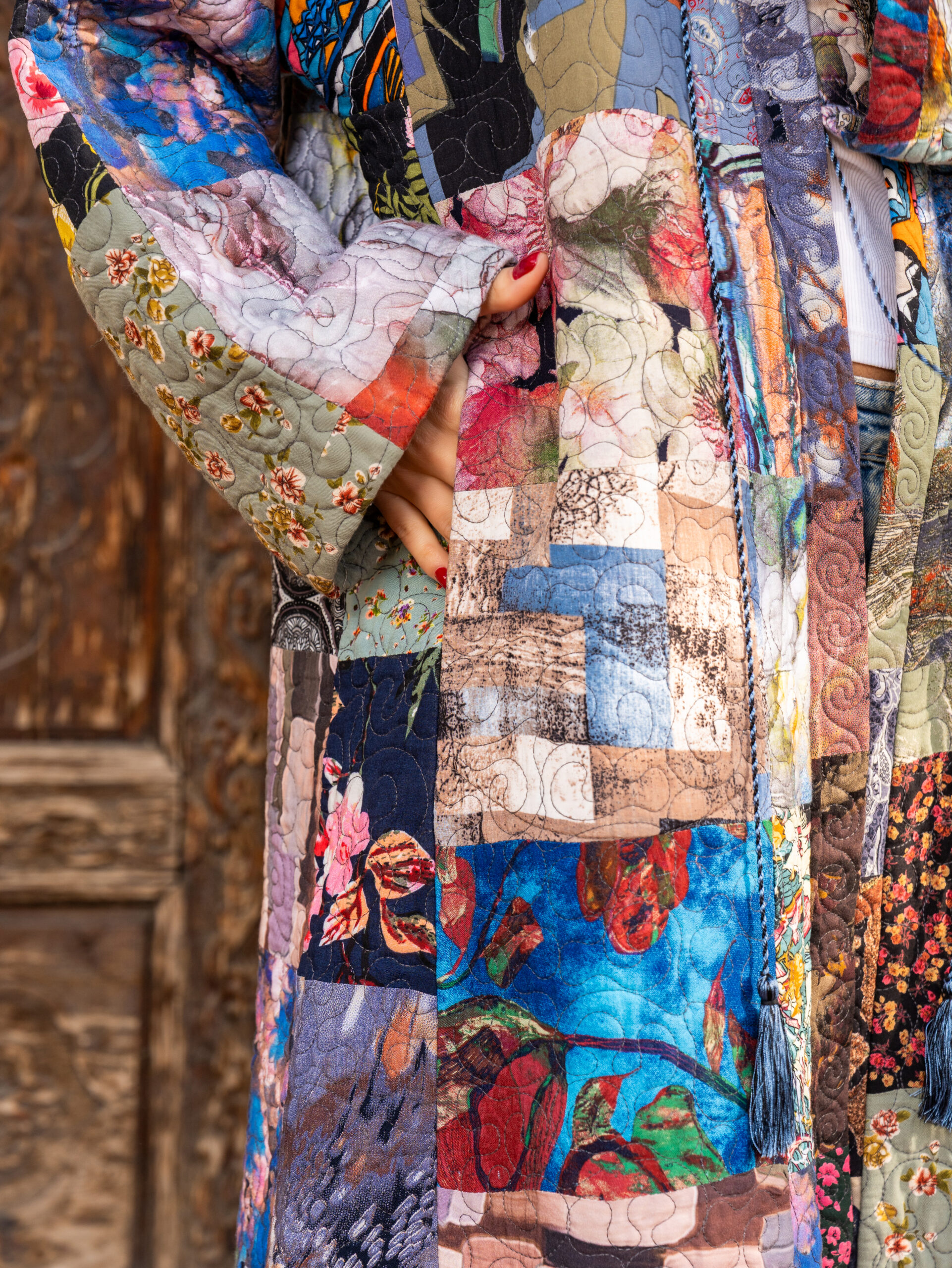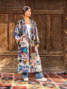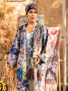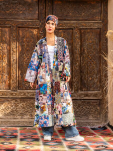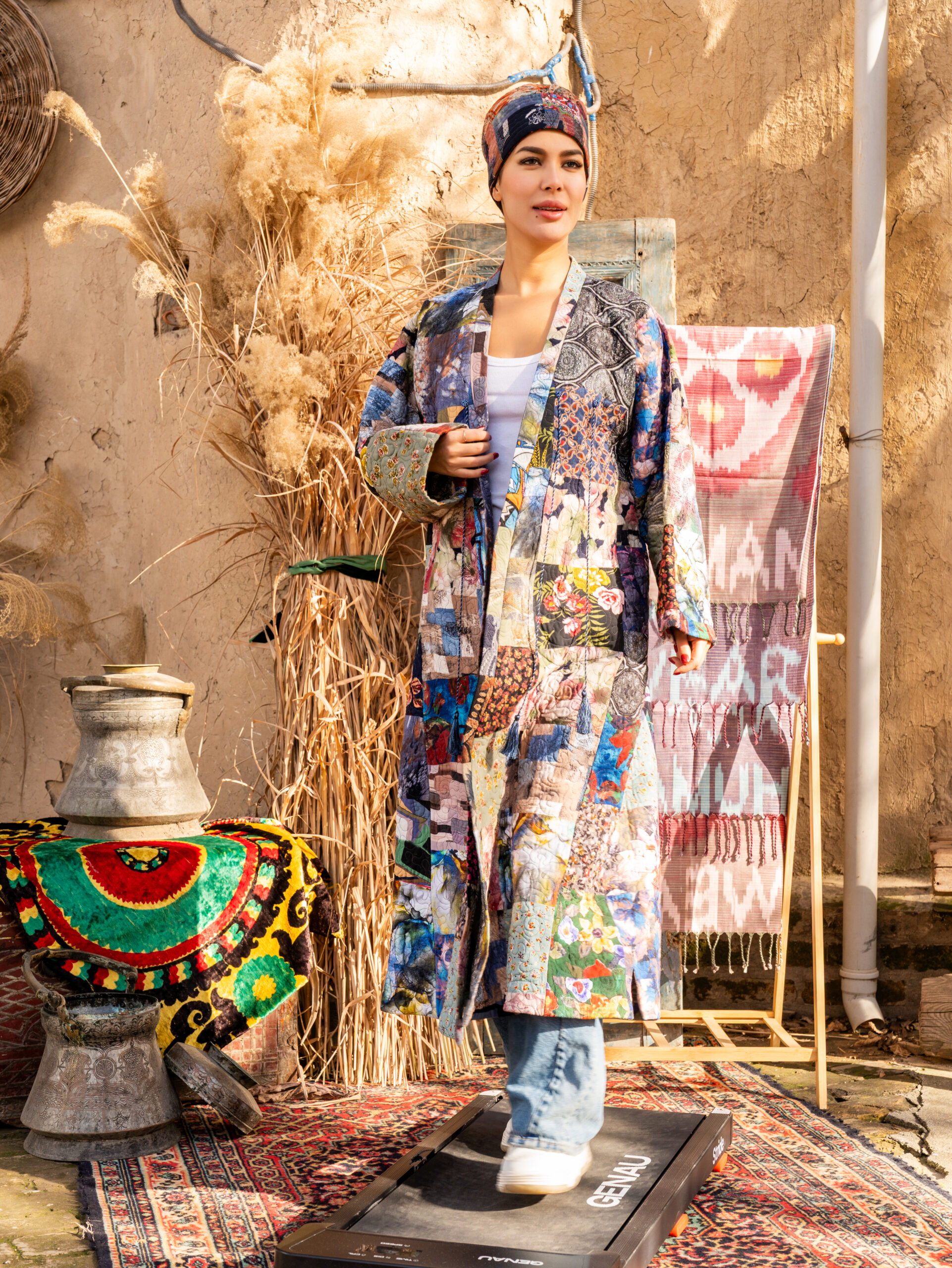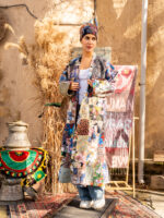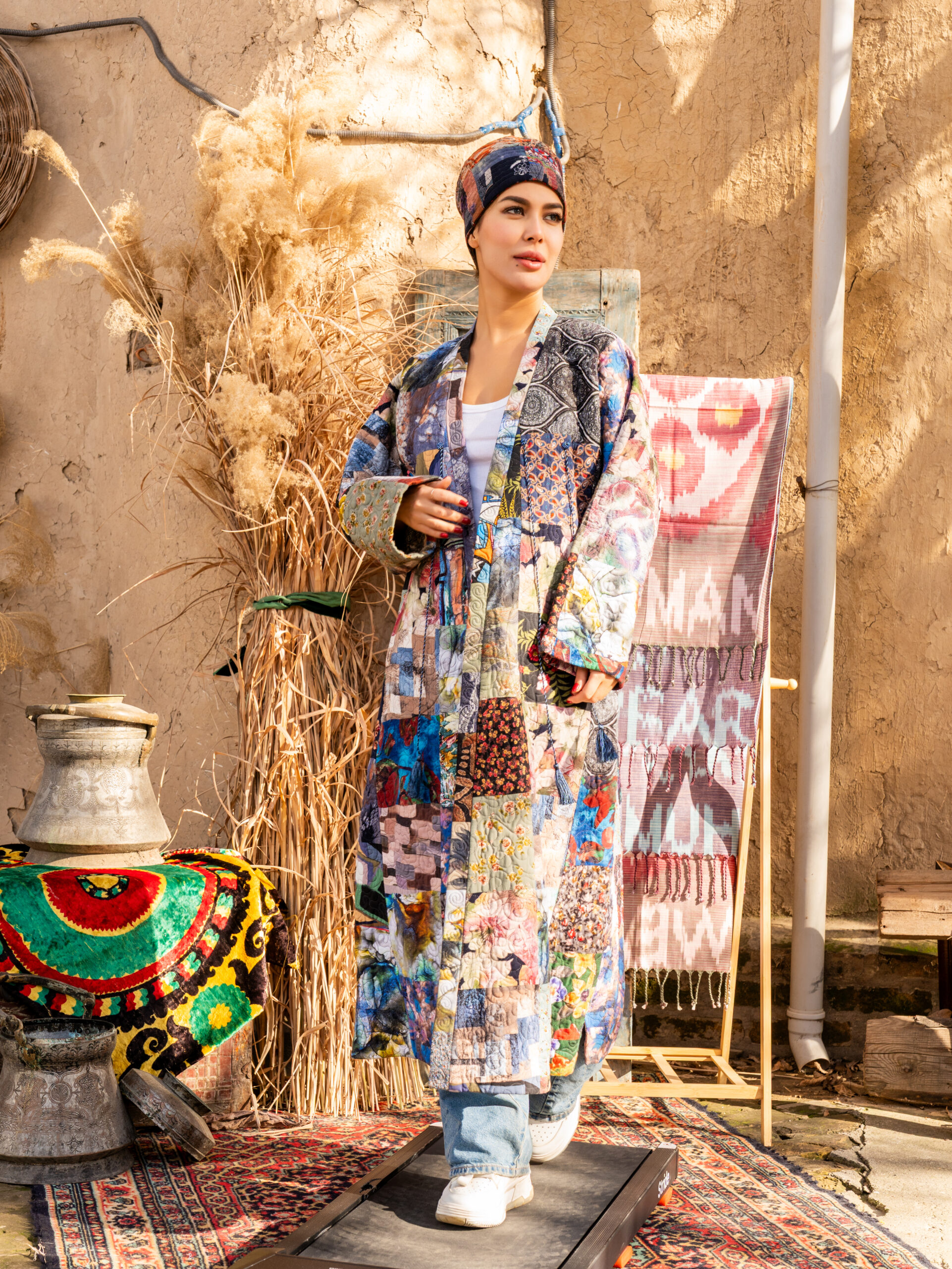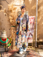 Comfortable chapan made from natural cotton. This jacket is 100% handmade, one of a kind, sewn by the famous designer from Turkmenistan. Chapan with quilting and cotton turban, it has tassels and pockets.