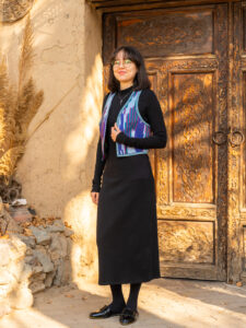 This item is unique, one of a kind, sewn by the designer of the brand “Human Wear”. The vest is decorated with hand-woven braid “jiyak”.