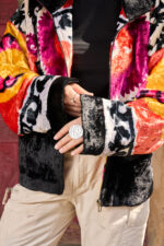 A unique jacket from “Human Wear” brand . Made from 100% natural uzbek velvet “Dukhoba”. The jacket has pockets.