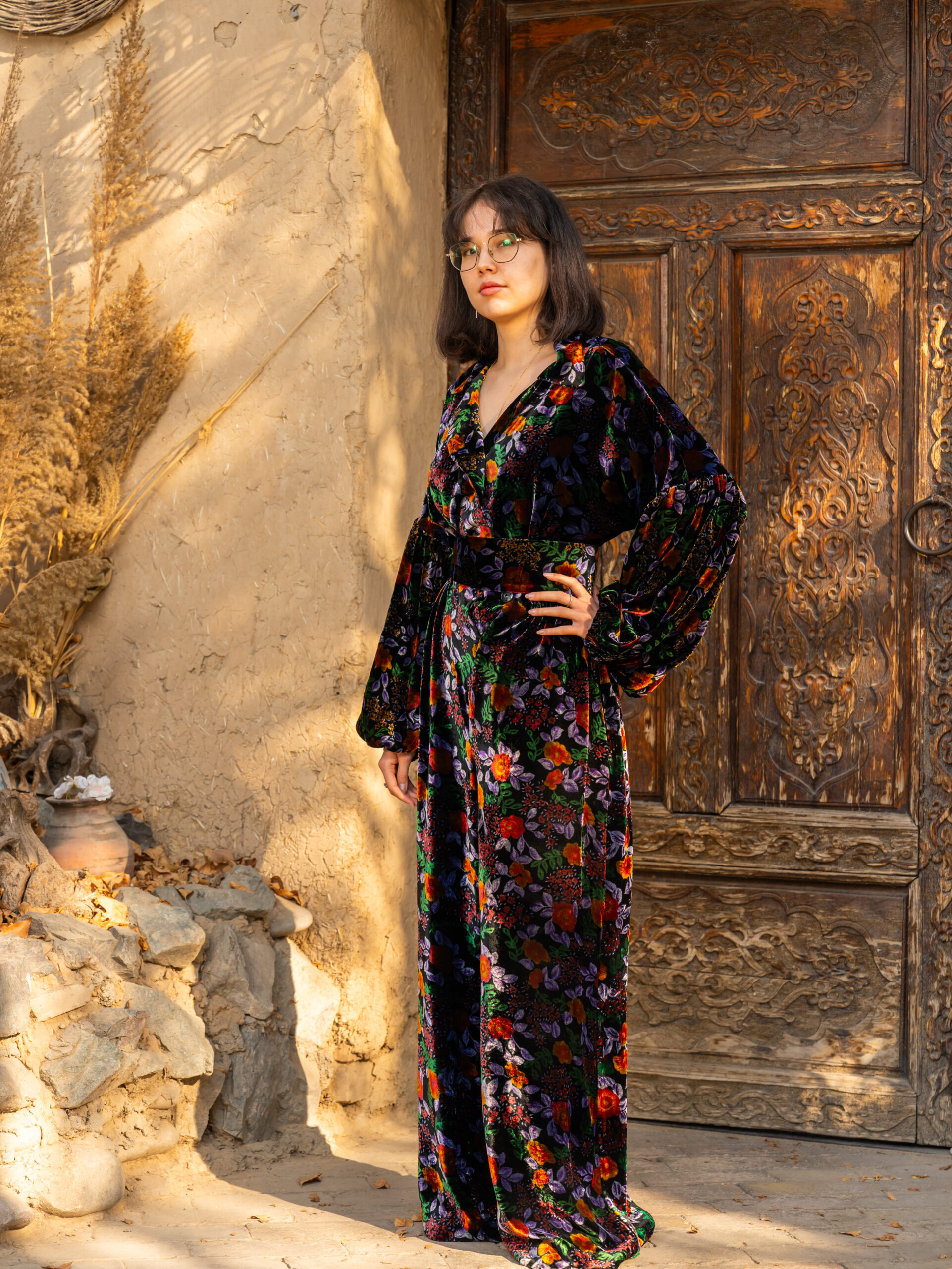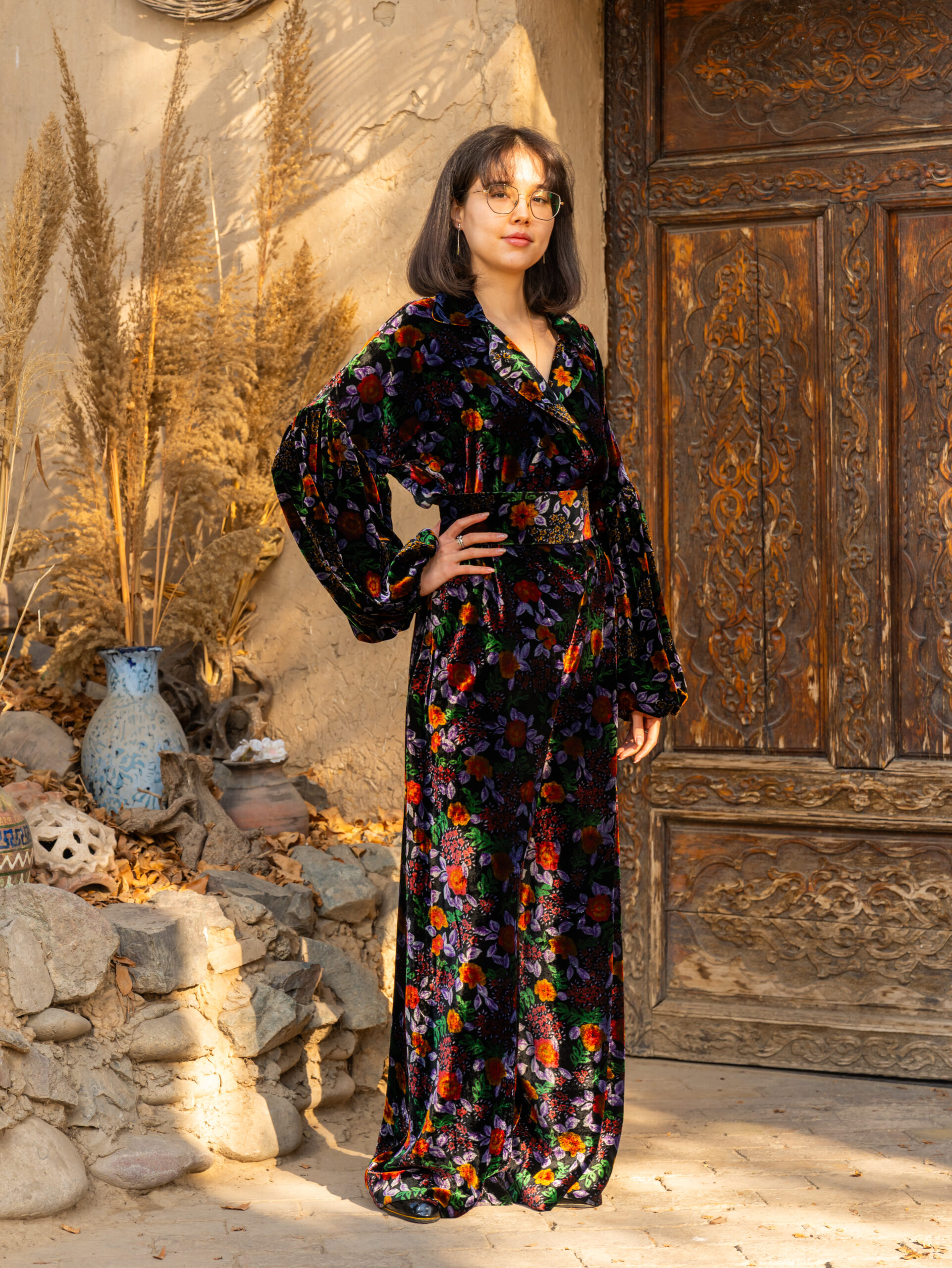Very comfortable jumpsuit made of natural vintage silk velvet.