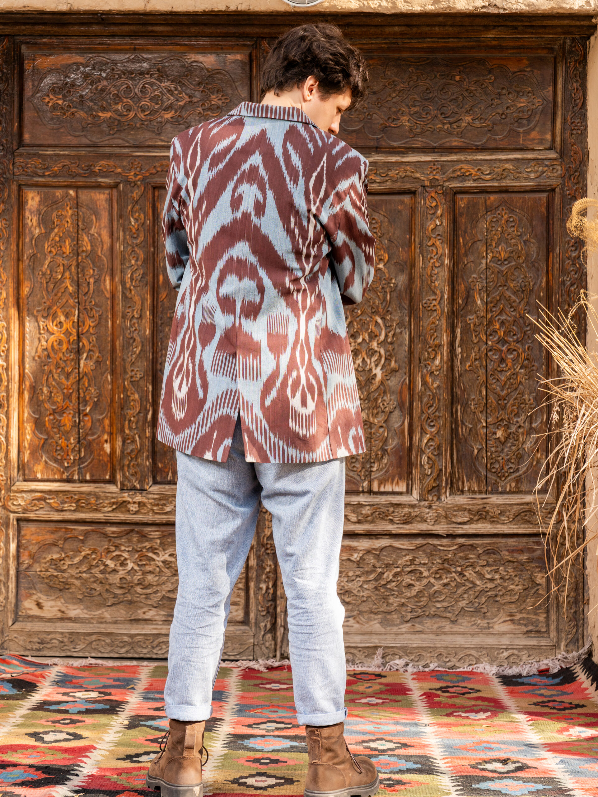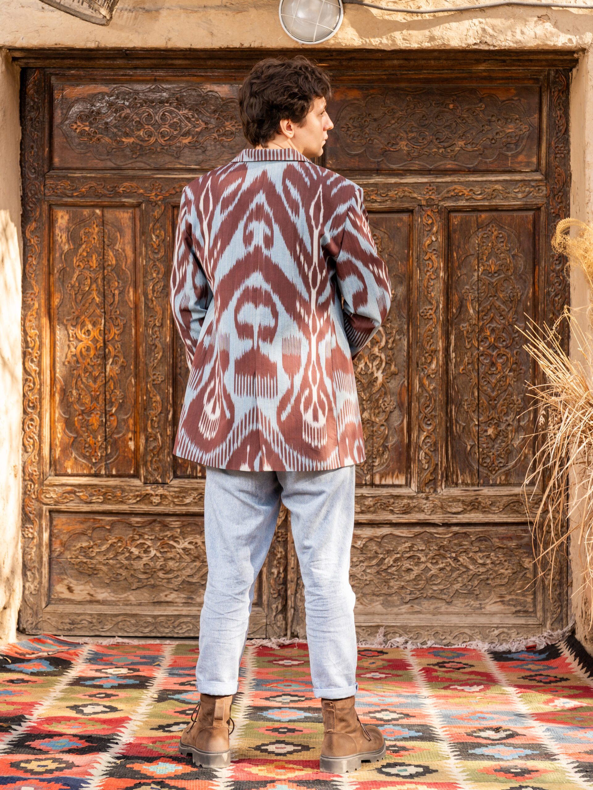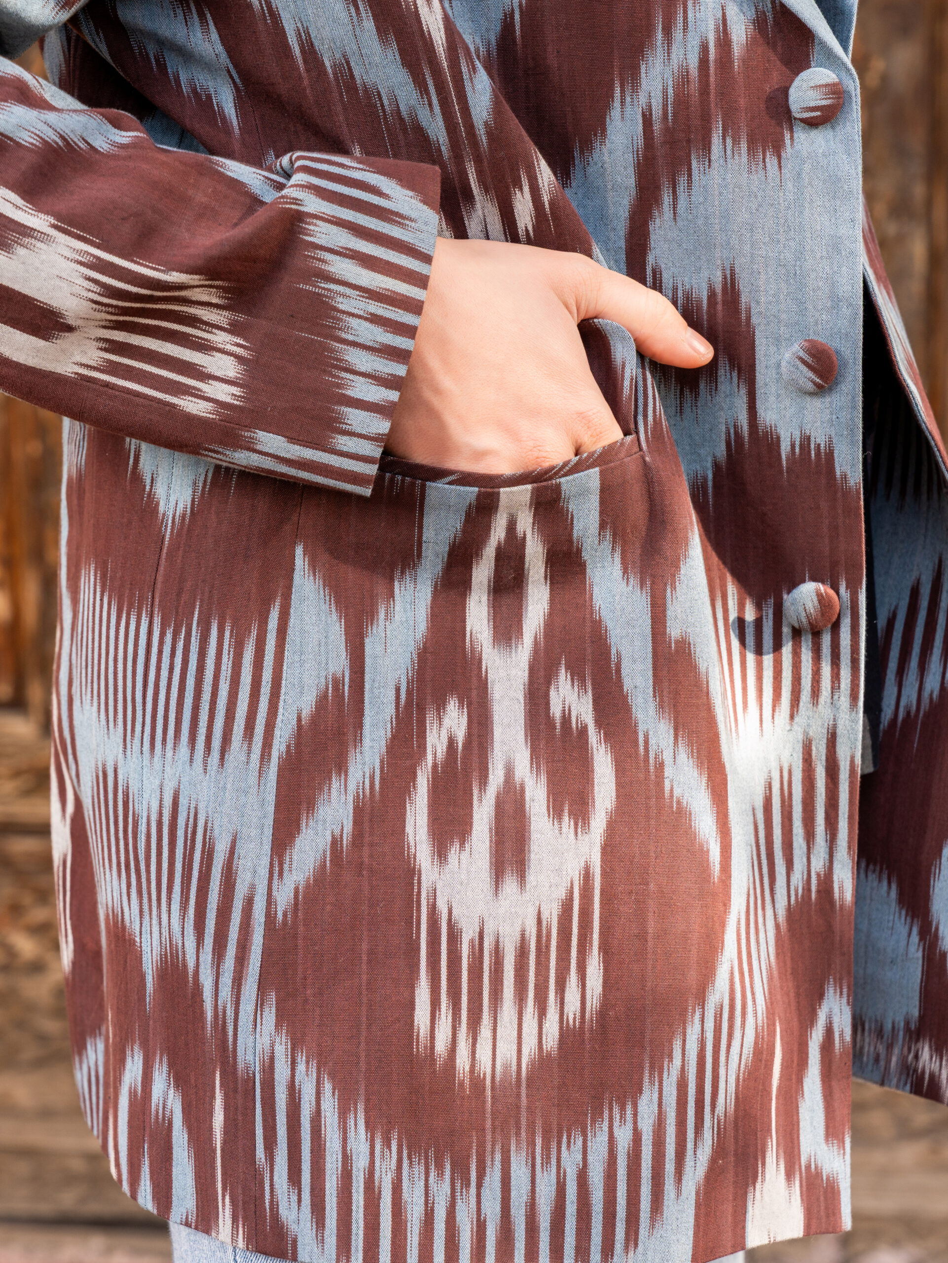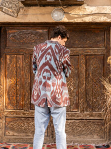 A unique jacket from Human Wear. Made from  100% natural cotton adras. Pockets are included.