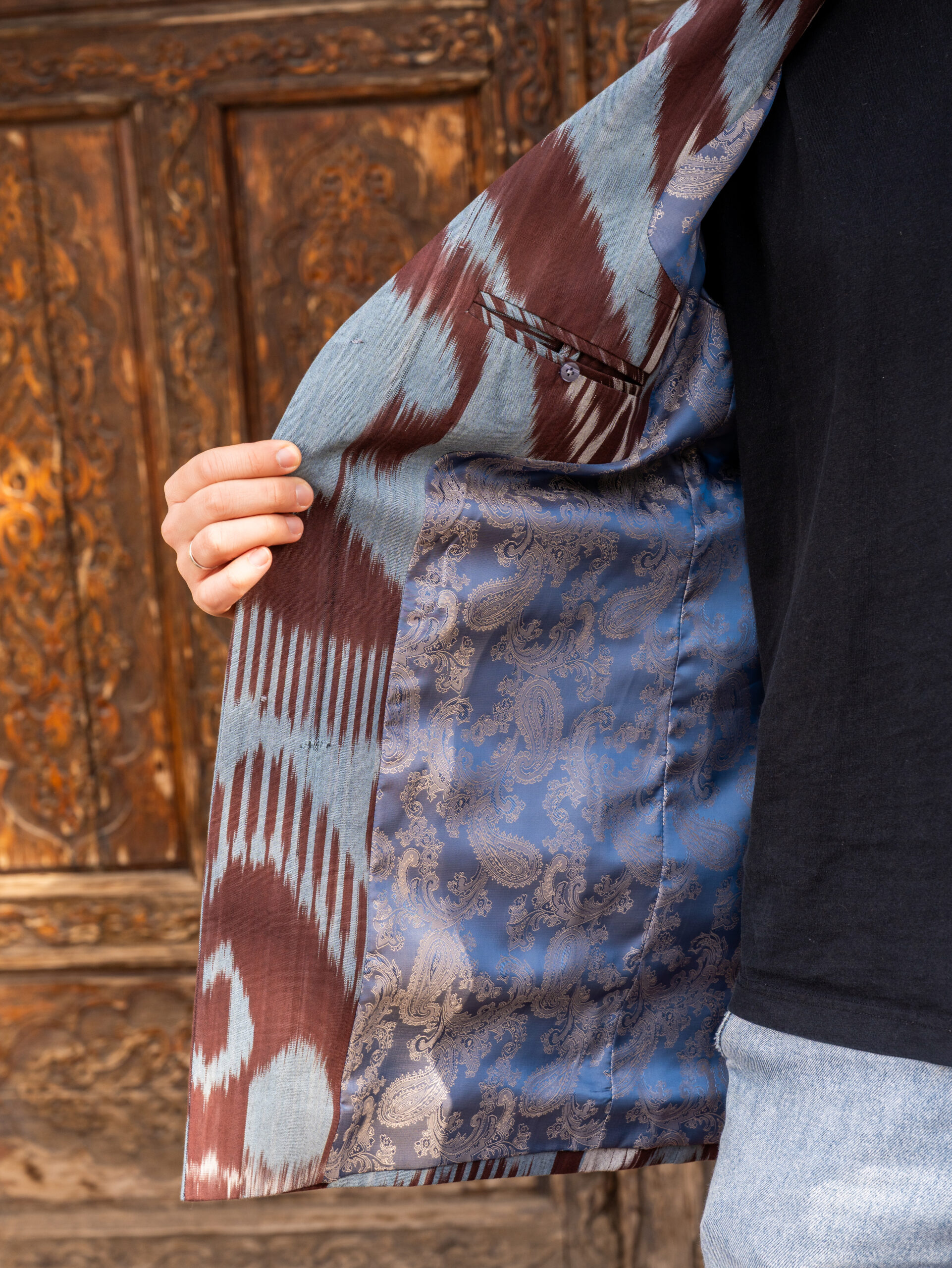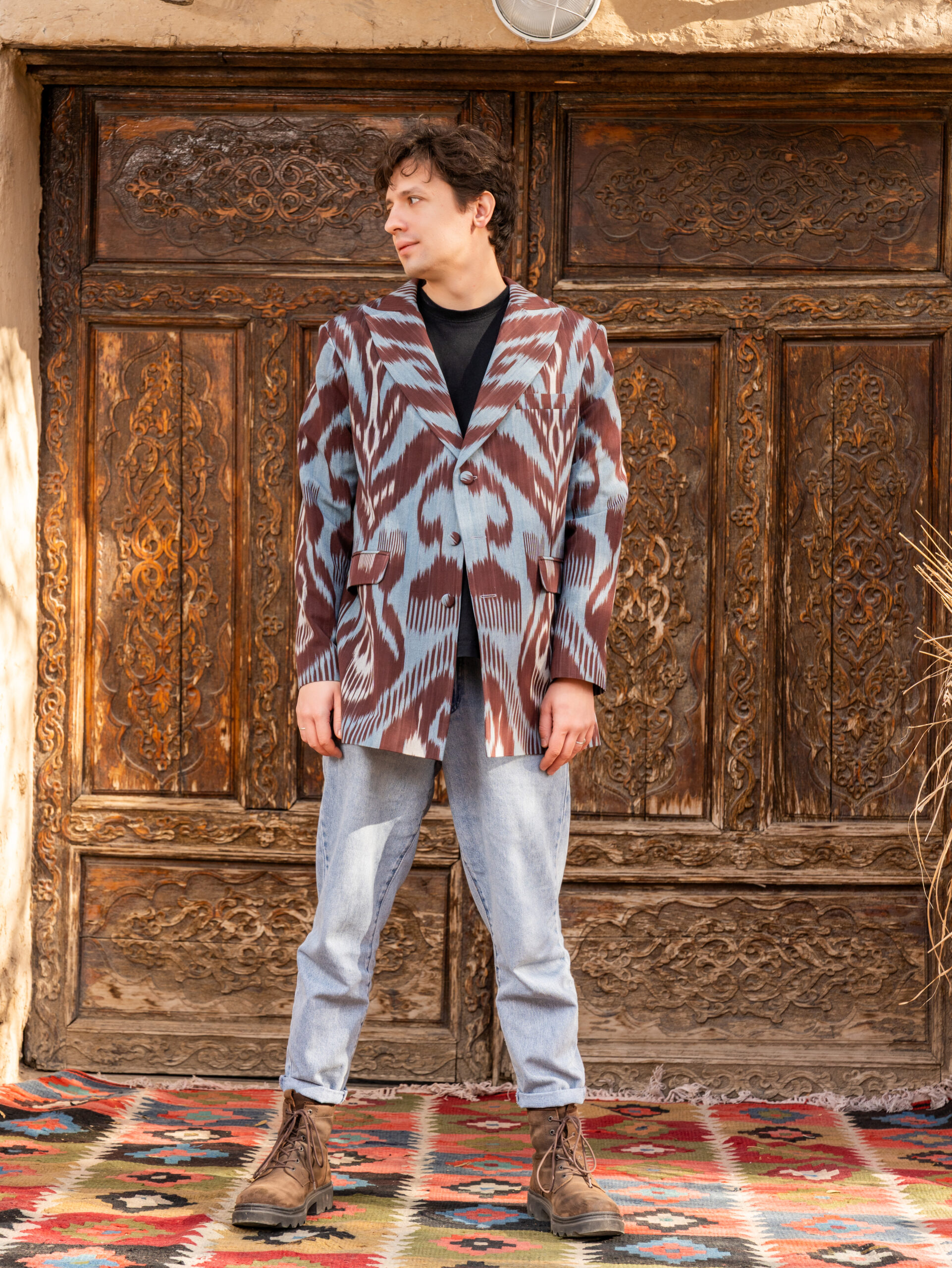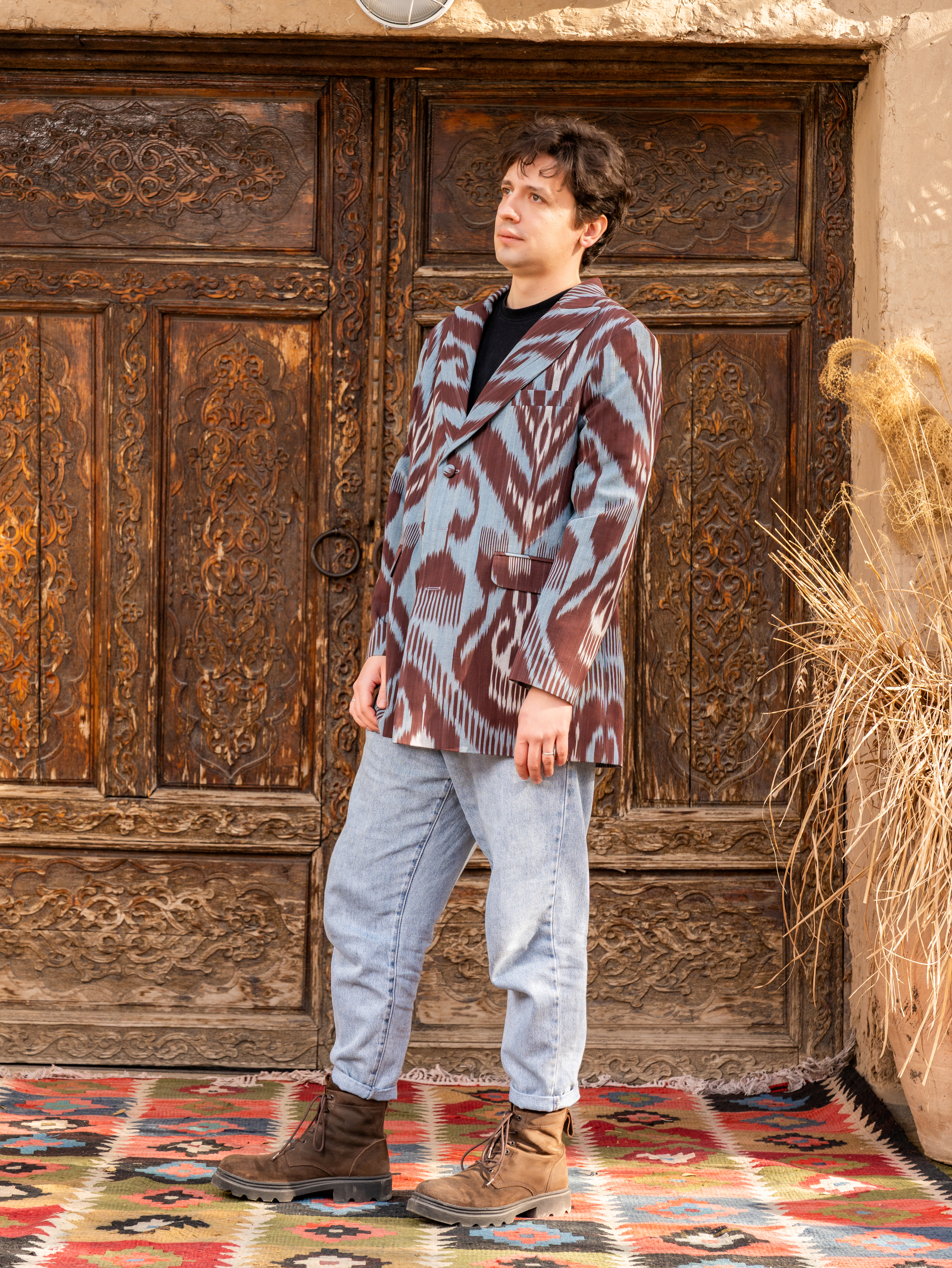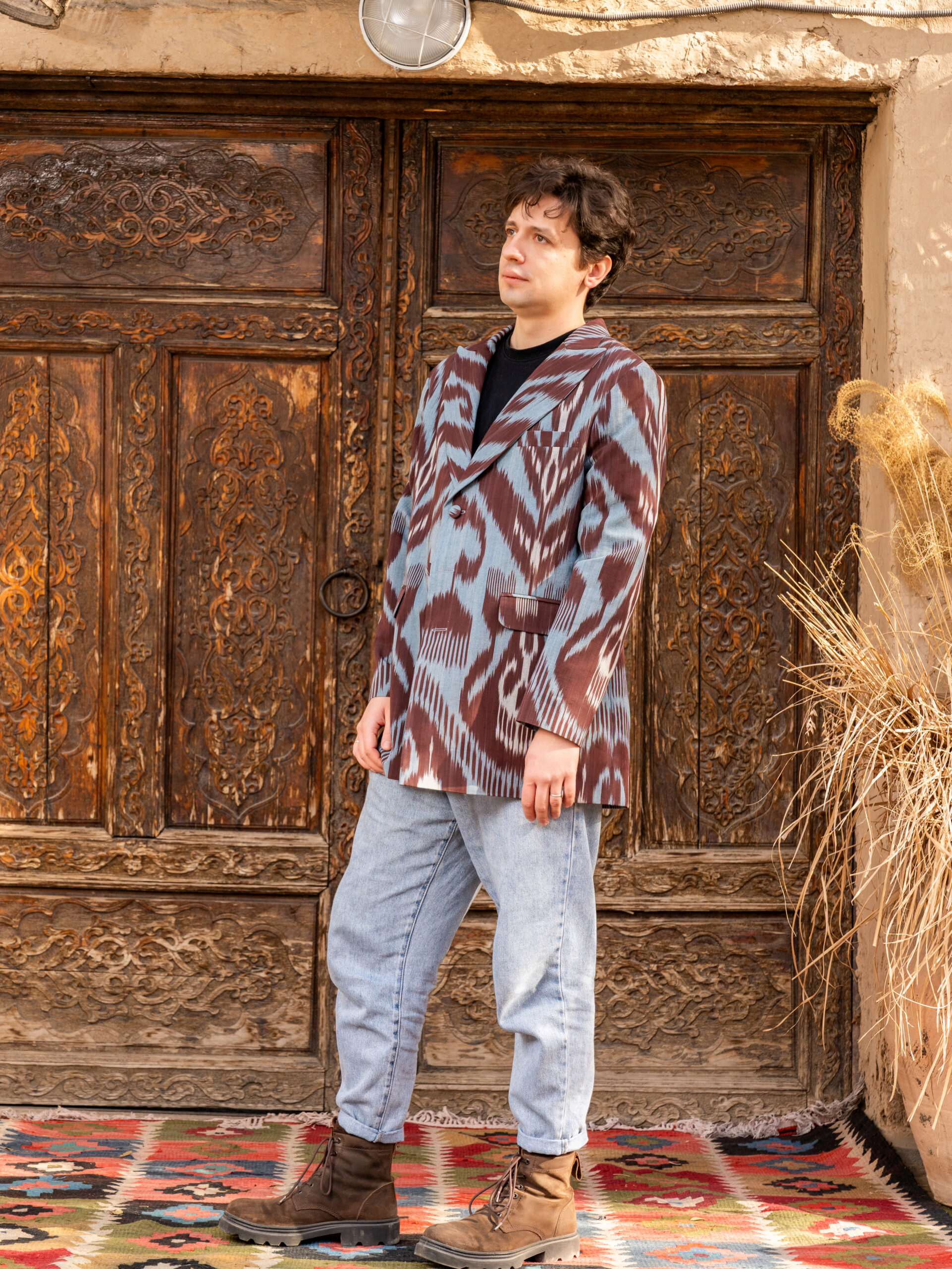 A unique jacket from Human Wear. Made from  100% natural cotton adras. Pockets are included.
